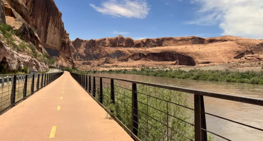 The project will extend the Colorado River Pathway by approximately 0.7 miles, closing a long-standing gap that currently forces cyclists to ride along a narrow section of highway before reconnecting with the trail near the Grandstaff Canyon Trailhead.
