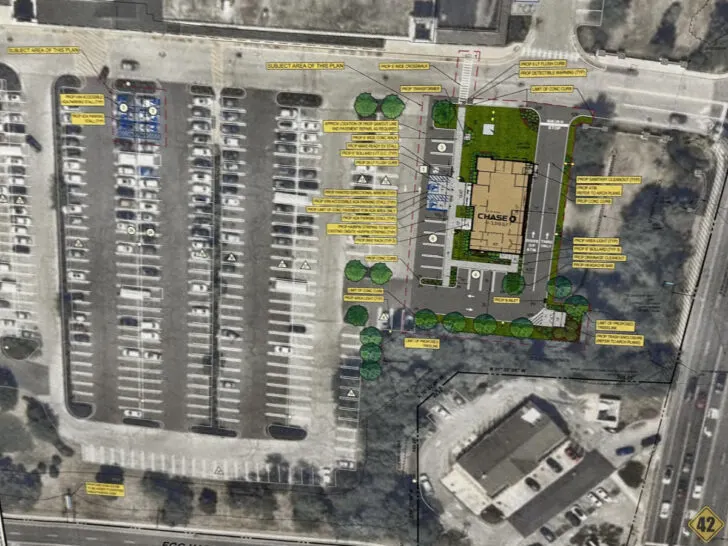 The branch will offer full interior banking services along with a drive-up ATM, though the site will not include a traditional multi-lane drive-thru. The design instead reflects Chase’s shift toward building branches that encourage in-person interaction.