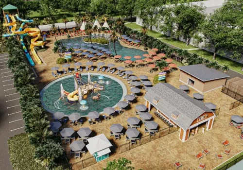 River Country Water Park will feature three thrilling waterslides: an open slide that spans 281 feet, twisting and turning for an adrenaline rush, a vibrant striped tube slide, and a high-speed freefall slide that plunges guests from 35 feet above. For those looking to relax, the oversized, island-inspired lagoon pool with shallow-water sun shelves and lounge seating will provide a perfect spot to unwind between the excitement of the rides.