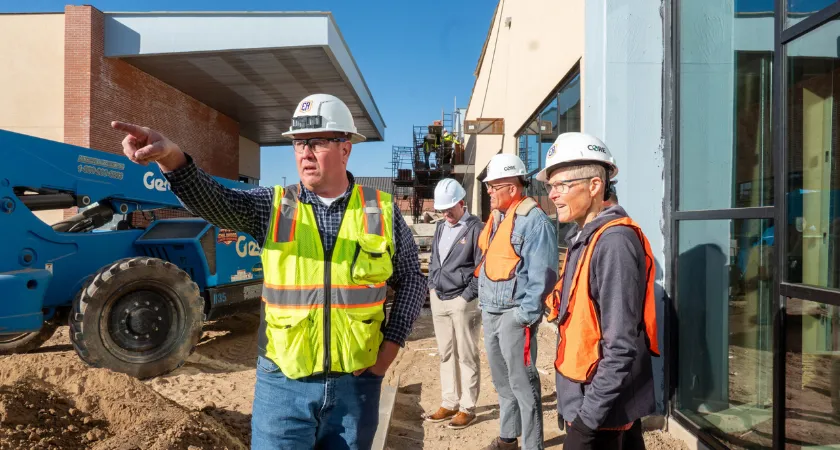 Members of the College’s District Executive Team recently toured the 19,300-square-foot project site in Thatcher and confirmed that work remains both on schedule and within the $15 million budget. The leadership group included President Todd Haynie, Vice President of Administration Heston Welker, Vice President of Academics and Student Affairs Susan Wood, Chief Government Relations Officer Keith Alexander, and Chief Information Officer Tom Thompson.