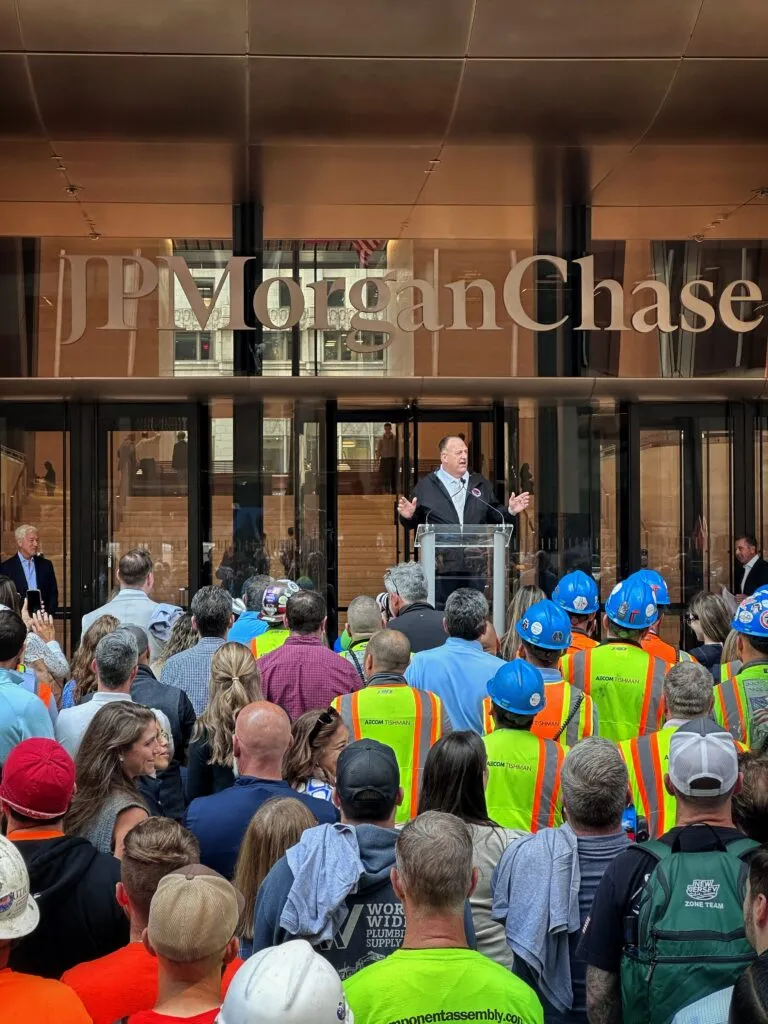NEW YORK — JPMorgan Chase hosted a large-scale celebration this week at its newly completed 1,389-foot global headquarters at 270 Park Avenue, recognizing the thousands of union workers who brought the $3 billion skyscraper to life.