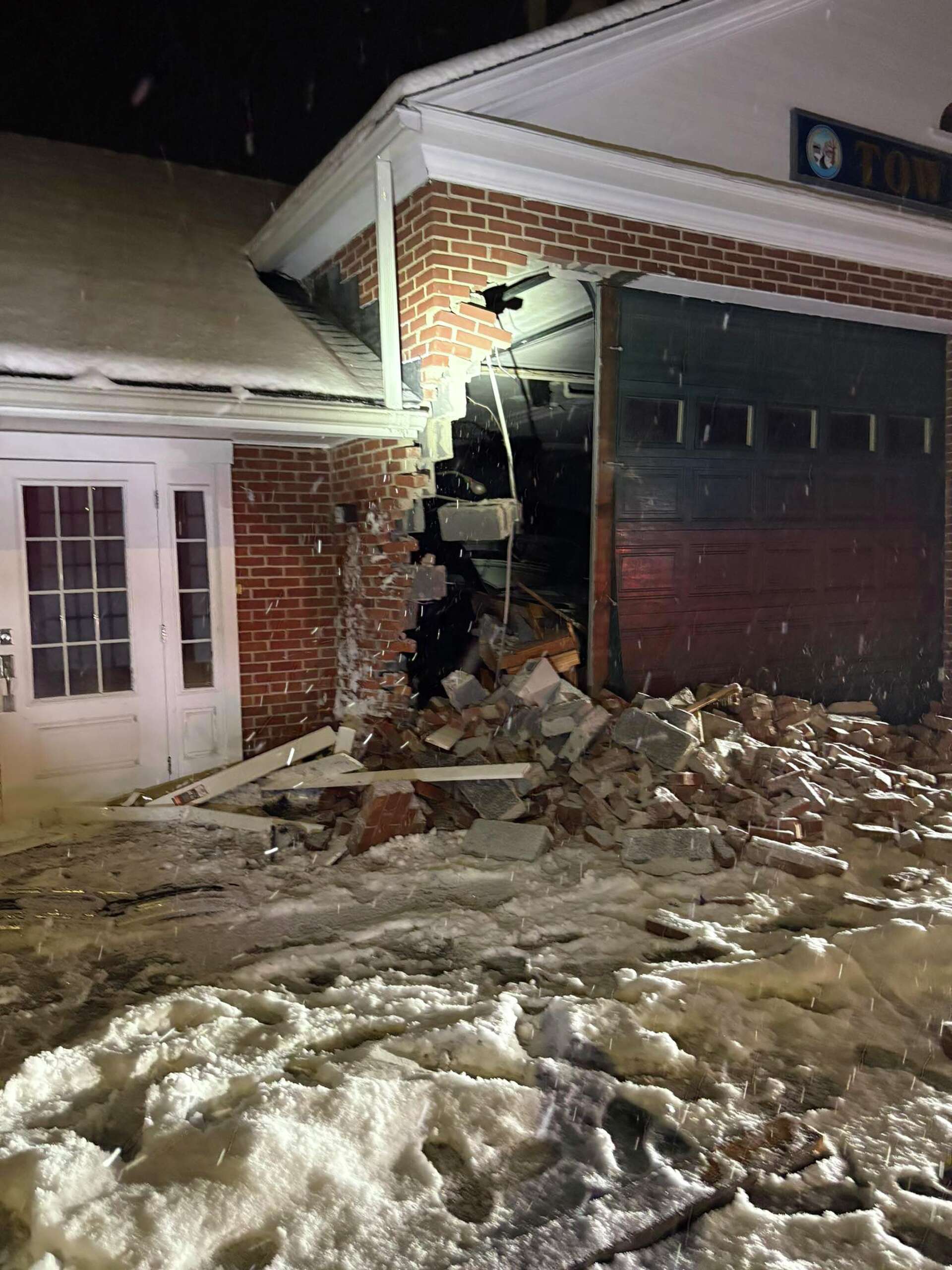 State police have not confirmed whether anyone was inside the garage at the time of the crash or if the driver or any passengers were injured. Officials also have not said whether nearby security cameras, traffic cameras or private surveillance systems captured footage of the incident.