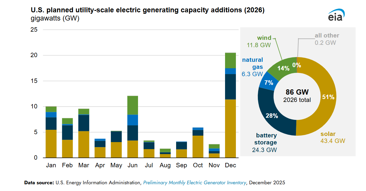 The timing of the rule coincides with a surge in energy infrastructure investment. Data from the U.S. Energy Information Administration indicates developers plan to add a record 86 gigawatts of new generating capacity in 2026, surpassing previous highs.